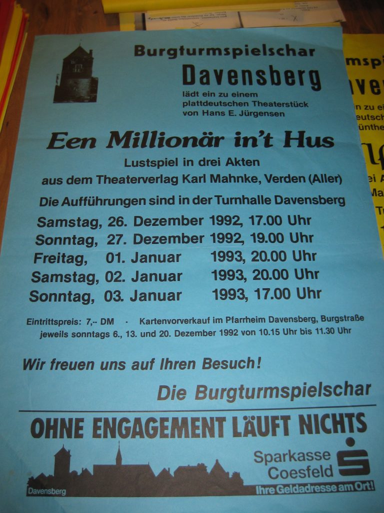 Im Winter 1992/93 zogen wir dann um in die Turnhalle der Grundschule Davensberg .